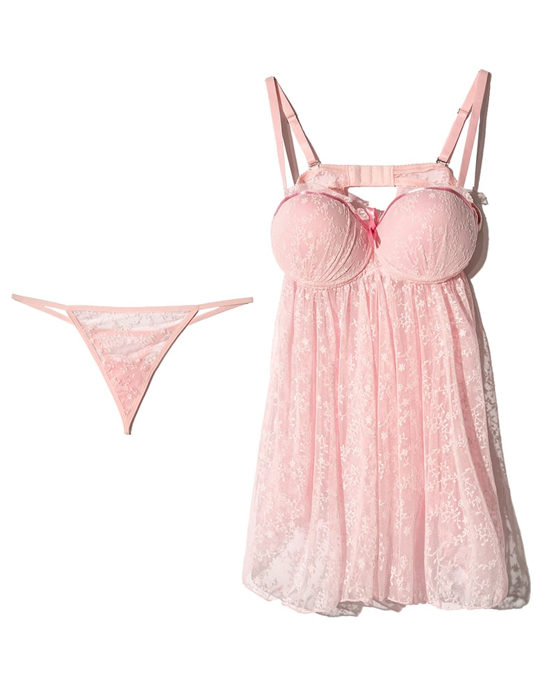 لباس خواب زنانه پشت گردنی توری ان بی بی 3890 سرخابی